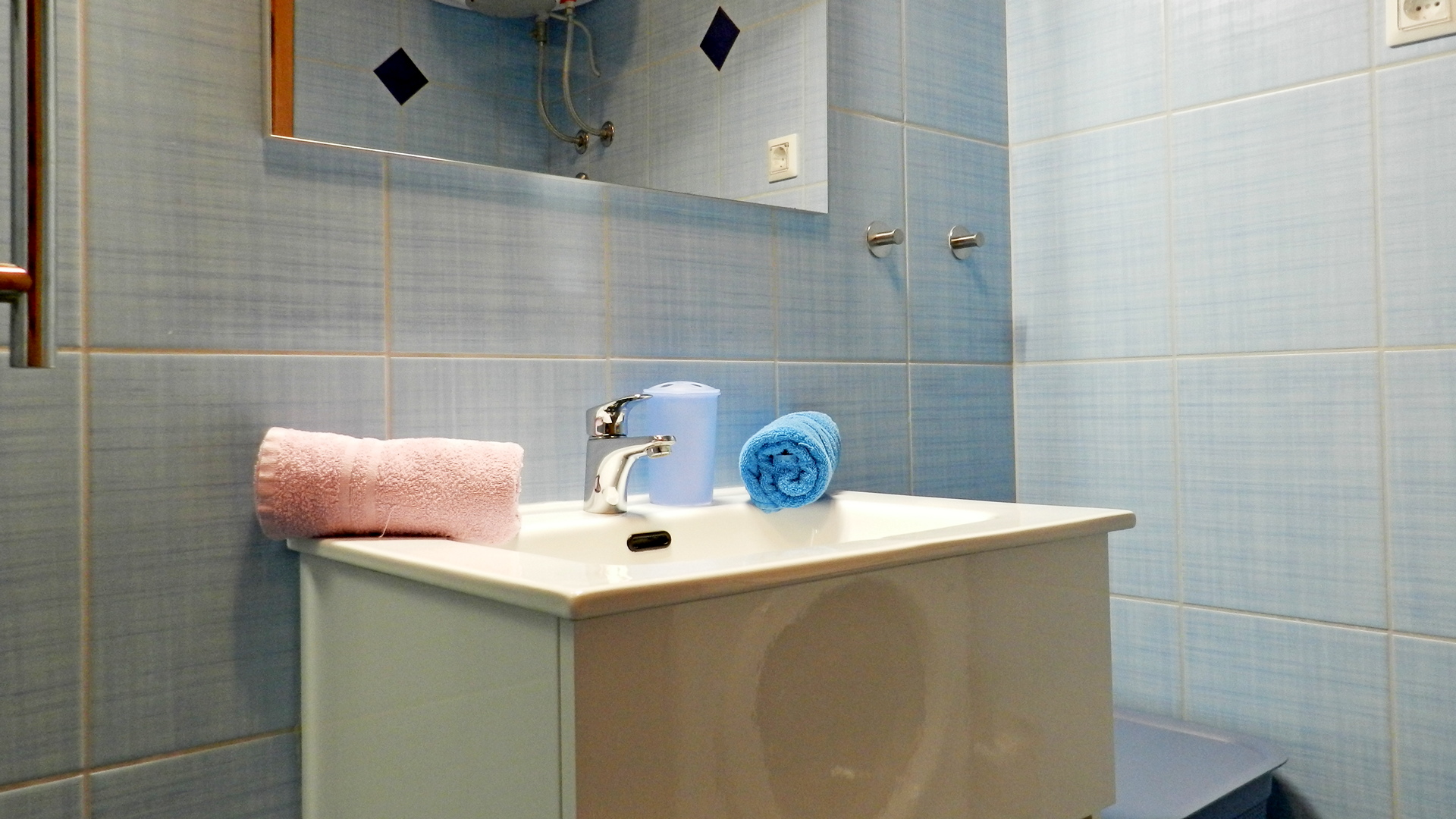 Apartment (43 m2) consist of hall, bedroom with matrimonial bed, main room with the kitchen and covered terrace (9 m2). It is suitable for two, three or four persons.